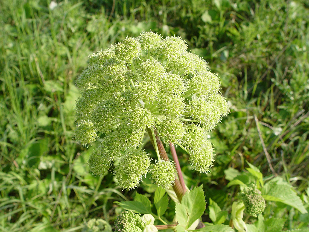 The rhizome of this plant is brown, radish, thick – up to eight centimeters in diameter, contains a yellowish or white milky juice. Since ancient times, it has been called the root of the Holy Spirit. From it, angelic oil is obtained, which has a burning-spicy taste and nutmeg aroma. Fatty oil from the roots has high phototoxicity – it discolors the skin under the influence of sunlight, so it should not be applied to exposed areas of the skin.